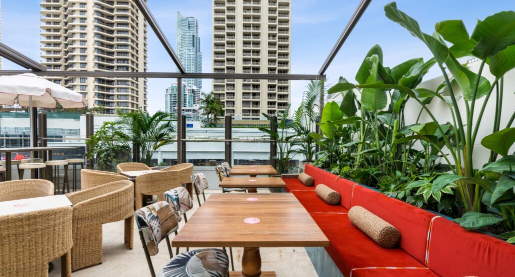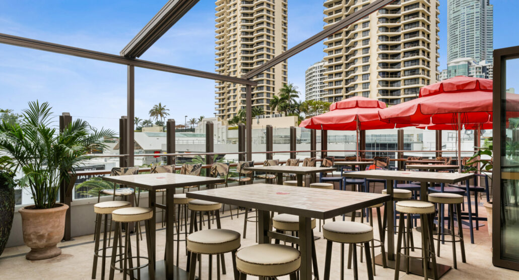 Boasting stunning views, this stylish space features a mix of high-bar and low topped tables for a dynamic experience, and plush banquette seating for relaxed gatherings. Enjoy open air ambiance of retreat under the retractable roof. With many options to suit your gathering, we’ll have the perfect spot for you